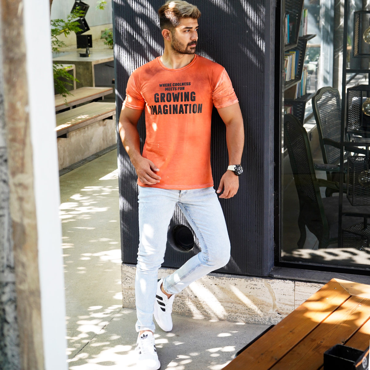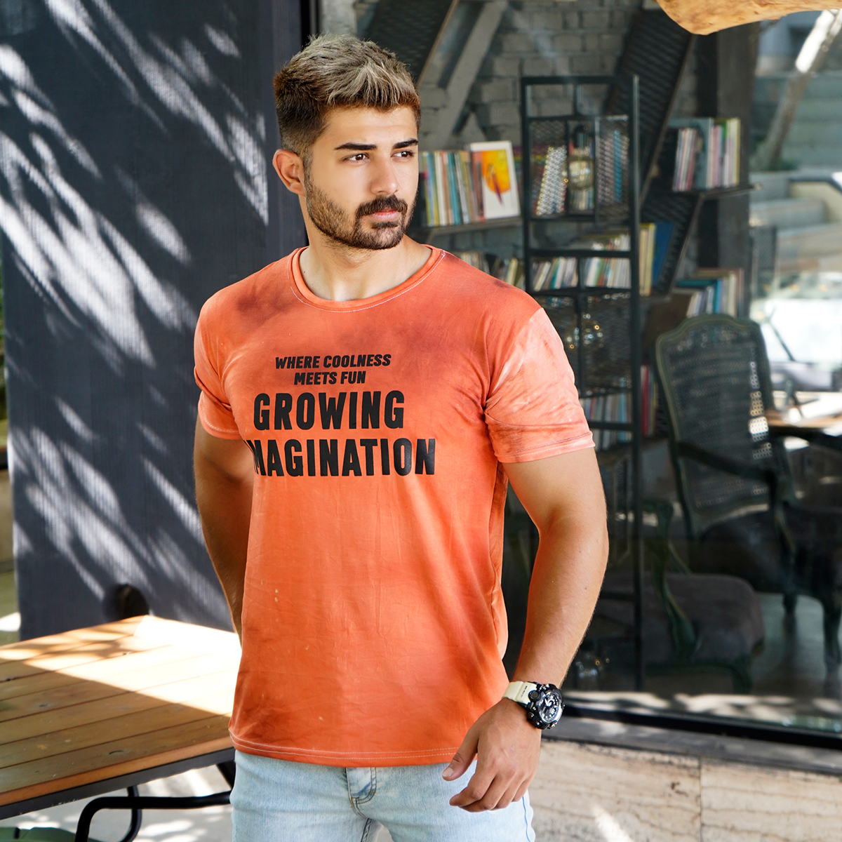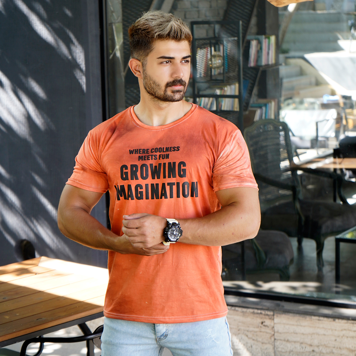 تیشرت مردانه ابر و بادی نارنجی مدل windy