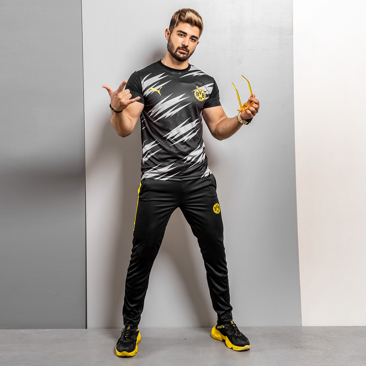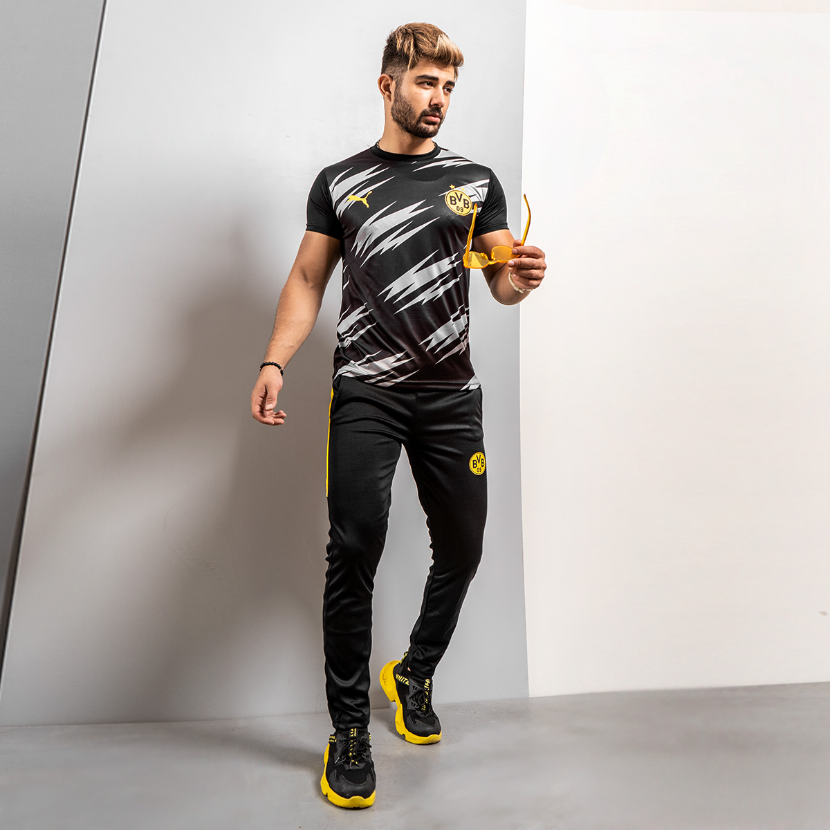 علاقهمندان باشگاهها و تیمهای مختلف ورزشی تمایل دارند پوشاکی با طرح و لوگوی همان باشگاه را بپوشند. از طرفی پوشیدن تیشرت به تنهایی یا شلوار به تنهایی، چندان مورد رضایت نیست؛ به همین دلیل این ست به صورت تیشرت و شلوار ارائه شده و طرح و لوگوی تیم فوتبال محبوب دورتموند را در خود دارد.