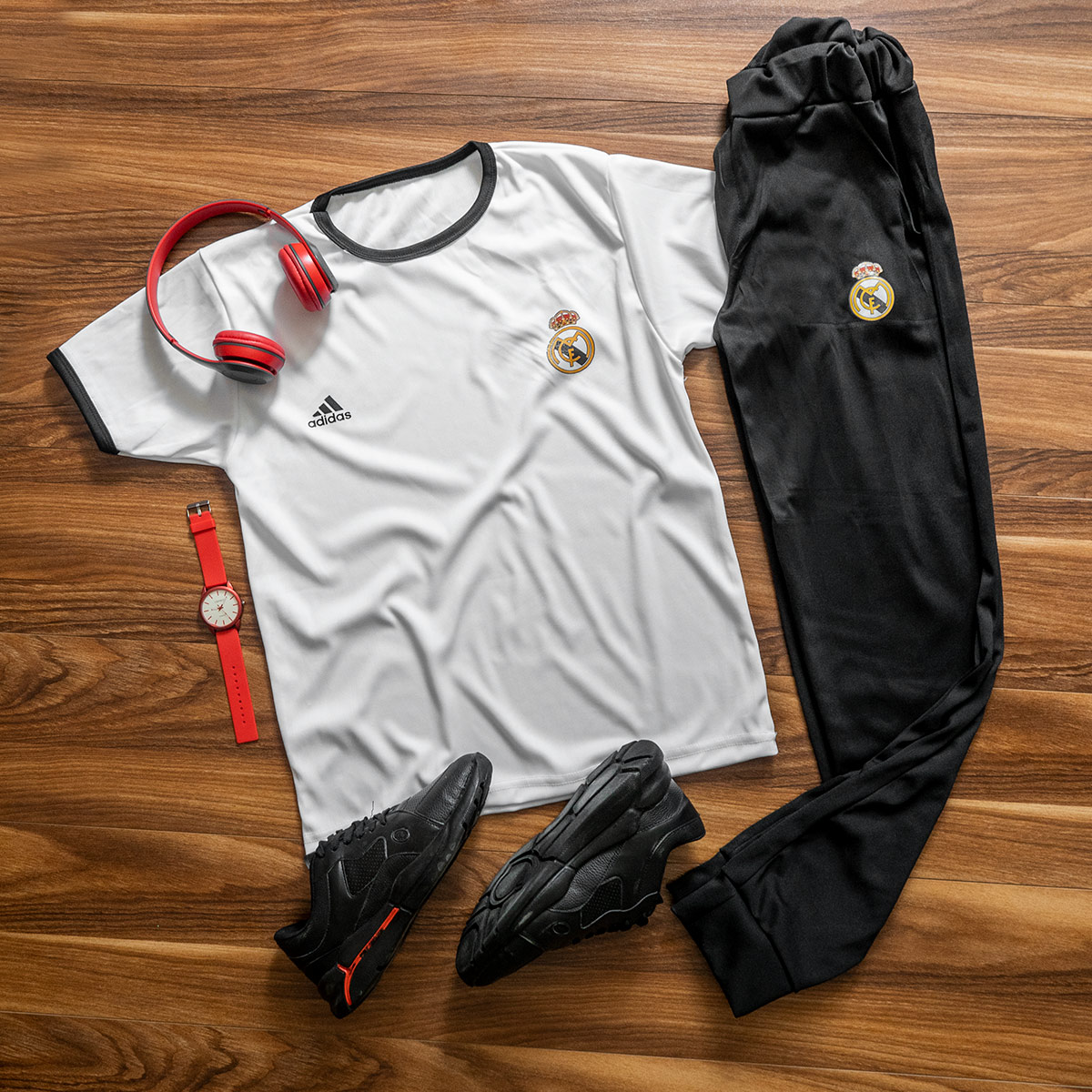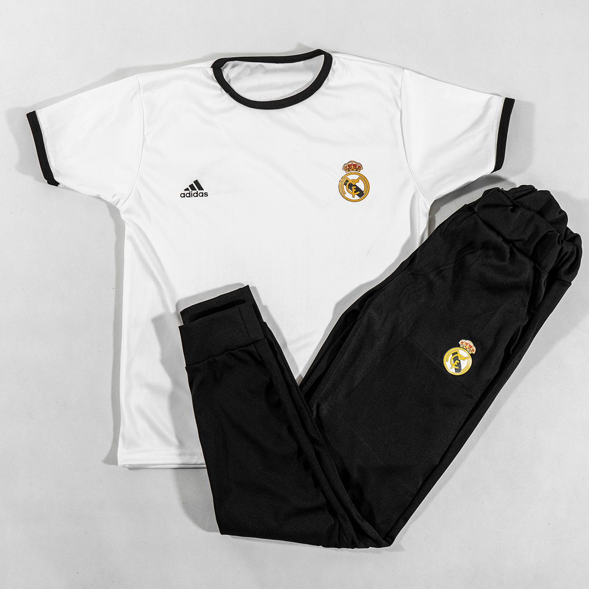 اگر اهل فوتبال هستید و به به باشگاه رئال مادرید علاقه دارید، پوشیدن این ست برای شما گزینه ی خوبی می باشد. این ست از یک شلوار و تیشرت تشکیل شده، که جنس تیشرت و شلوار از نوع فلامنت در نظر گرفته شده و رنگ بندی بدین صورت است که تیشرت آن، به صورت سفیدِ و شلوار این ست، به صورت مشکی در نظر گرفته شده است.