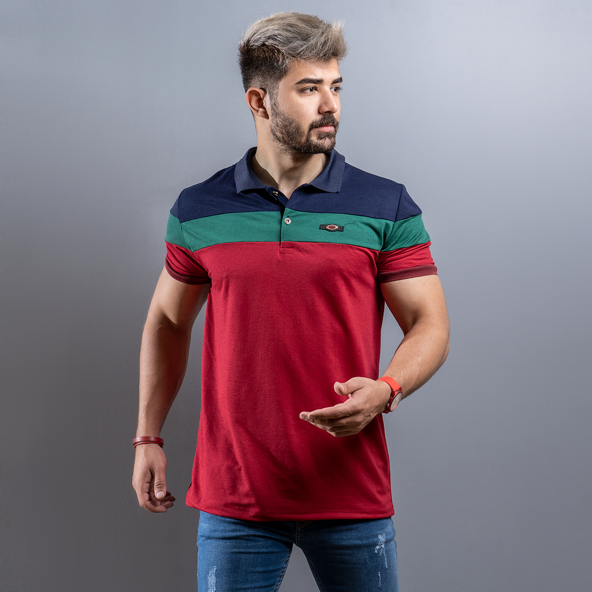 تیشرت Fashion مردانه سرمه ای زرشکی مدل Garland