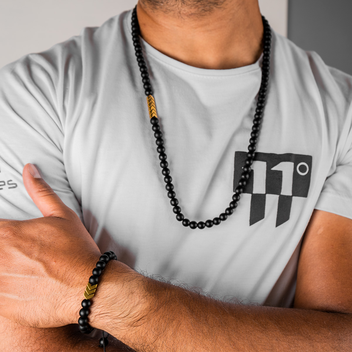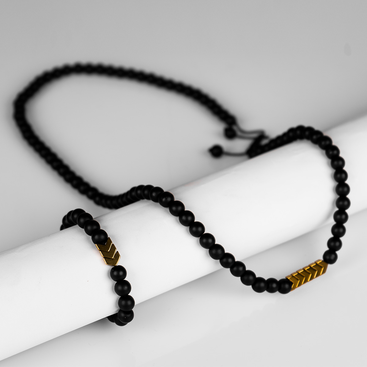 نیم ست مهره ای مشکی مدل Mancho از انواع گردنبندهای رو لباسی است که محبوبیت خاصی بین جوانان پیدا کرده است و جذابیت زیادی به استایل شما میدهد.قطر سنگها 2 میلی متر و به رنگ مشکی مات بوده و بدلیل طراحی خاص، برای استفاده روزانه و قابل ست شدن با انواع پوشش ها و مناسب برای آقایان و خانم هاست.